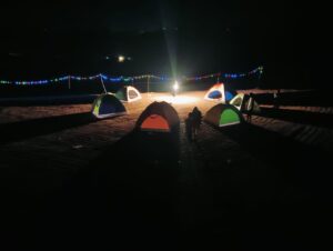 He personally welcomes every camper, ensures their safety, and shares local stories, culture, and hidden trails only the locals know. From home-cooked meals to night treks, he makes sure every moment is unforgettable.